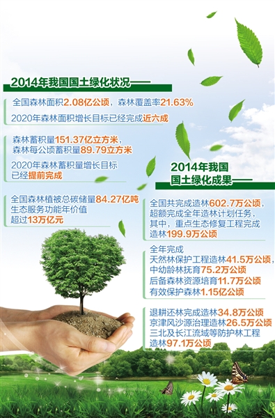 新中国成立以来特别是近30多年来,在历届党和国家领导人的重视下,我国植树造林扎实推进,“三北工程”、“天保工程”等成效显著。与植树造林相呼应的是,绿色理念也蔚然成风。“环境就是民生”、“青山就是美丽”、“蓝天也是幸福”等理念深入人心。