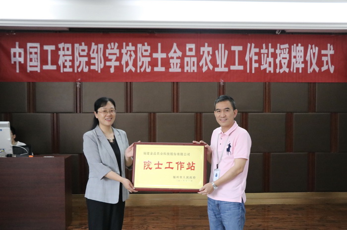 4月28日,福建金品农业科技股份有限公司院士工作站授牌仪式在公司举行。福州市科协杨云华副主席代表福州市人民政府为院士工作站授牌,福建省种子管理总站张卫清副站长、中国科协青年科学家福州活动基地联络处黄华峰处长、闽侯县科协潘桂光主席出席授牌仪式。