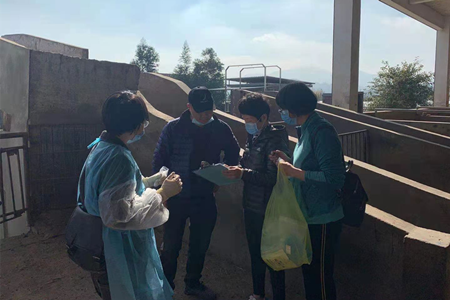 督导组在被抽查屠宰场所在地农业行政主管部门领导和业务人员陪同下,分别对两个屠宰场以听取汇报、查阅资料、现场查看和入场抽样监测等方式进行检查。现场查阅了屠宰场的生猪来源、入场查验、检疫检验、消毒灭源、无害化处理、自检实验报告等方面的档案记录,检查了屠宰场安全生产工作开展情况和非洲猪瘟自检工作开展情况、派驻官方兽医情况,并对每个屠宰场随机抽取自检血清留样样品和入场采集非洲猪瘟风险评估的拭子样品,以便掌握抽查的屠宰场非洲猪瘟自检实验室检测结果的准确性和非洲猪瘟病毒潜在的风险概率。