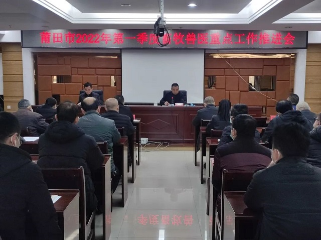2022年1月21日上年,莆田市农业农村局召开2022年全市第一季度畜牧兽医重点工作推进会。邱剑泰副局长主持会议并作强调讲话。市、县区农业农村局畜牧兽医分管领导及业务负责人参加会议。