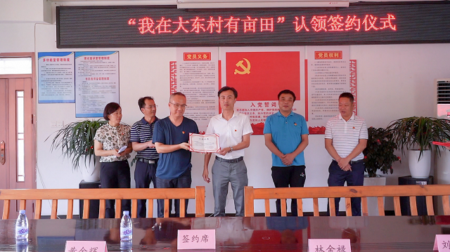 7月25日下午,莆田市农业农村局在“机关+农村”结对共建的涵江区江口镇大东村举行“我在乡间有亩田”主题党日暨现场认领活动。
