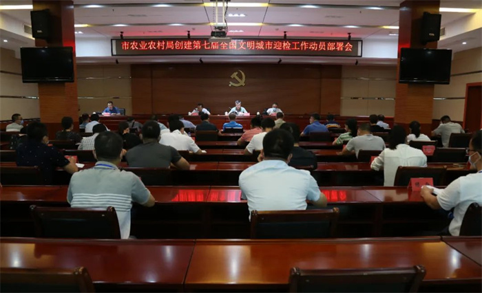 8月4日上午,龙岩市农业农村局召开创建第七届全国文明城市迎检工作动员部署会,龙岩市农业农村局局长钟寿宁主持会议并讲话,在家局领导、各工作组组长、各科站负责同志参加会议。