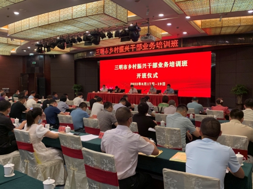 8月17-19日,三明市乡村振兴干部业务培训班在永安举办。本次培训班由三明市乡村振兴局、市财政局、市住建局联合举办,三明市农业农村局党组成员、副局长出席培训班开班式并讲话,永安市政府二级调研员出席会议并致欢迎词。来自各县(市、区)乡村振兴局分管领导、财政局和住建局业务科室负责人,以及40个省级乡村振兴试点村所在乡镇分管领导参加培训。