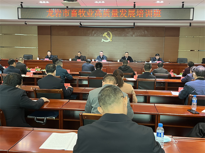 为贯彻落实全省畜牧兽医工作培训班会议精神,3月3日,龙岩市畜牧业高质量发展培训班在市农业农村局综合会议室举办,局四级调研员张永华主持,局主要领导、分管领导,各县(市、区)农业农村局分管领导、站所负责人以及市局相关科站人员共计50余人参加培训。