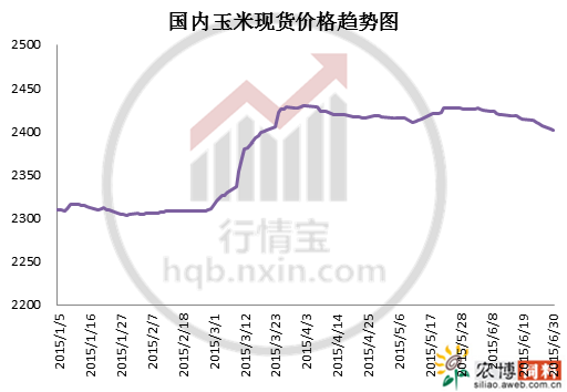 2015上半年国内玉米市场走势先扬后仰,呈现旺季不旺的基本走势。第一季度因玉米临储收购量惊人,3月引发玉米价格快速上涨。受到国储库存高企及下游需求低迷压制,在临储玉米收购结束后,玉米价格受临储玉米拍卖成交低迷影响。同时,大量进口高粱、大麦及玉米到港,给予需求本就低迷的国产玉米又一打压,企业调整配方、进口配额等风波纷纷来袭,第二季度玉米市场陷入震荡下跌通道。