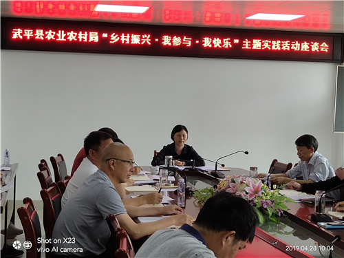为进一步弘扬五四精神,激励广大青年干部担当作为的精、气、神,武平县农业农村局于4月2 8日召开“乡村振兴·我参与·我快乐”主题实践活动暨青年干部职工座谈会,局党组、行政班子成员、农业党委专职委员、党(总)支部书记、35周岁以下青年干部职工共40余人参加了座谈会。会议由县直农业系统党委书记、县委农办主任、农业农村局党组书记、局长王琼荣同志主持。