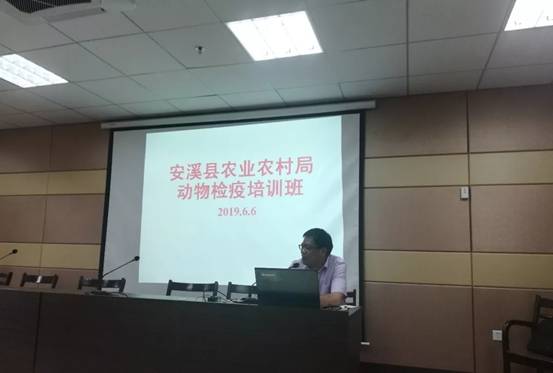 为有效防范非洲猪瘟,进一步规范生猪产地检疫和屠宰检疫工作,6月6日,县农业农村局举办了全县动物检疫培训班。各乡镇动物卫生监督中心官方兽医、各定点屠宰场检疫人员及县农业农村局相关科室人员共计四十余人参加。