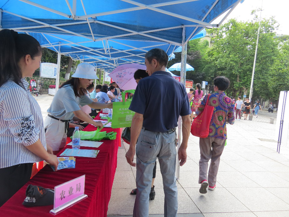 2019年全国食品安全宣传周的主题为:“尚德守法,食品安全让生活更美好”。活动期间,围绕公众关心的农产品农药残留,禁限用农药等相关问题,农业农村局的工作人员通过现场讲解、树立宣传展板等形式为路过的群众宣讲法律法规、普及科学知识,帮助广大群众更加了解食品安全知识及相关法律法规,不断提高公众维权能力和科学素养,营造人人关心维护食品安全的浓厚氛围。