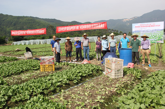 2020年,福建省种子总站、福建金品农业科技股份有限公司、福建农林大学等单位联合主持的“特色绿叶蔬菜品种选育与推广”项目,在闽清县东桥镇湖洋村绿辉蔬菜种植农场建立夏季特色绿叶蔬菜新品种展示示范基地,闽清县种子服务中心承担了项目的具体实施。新品种展示示范面积共100亩,示范青梗小白菜2个、快菜品种1个、菜心品种1个、黑叶小白菜品种1个;展示特色绿叶蔬菜新品种15个,其中青梗小白菜品种4个,快菜品种3个,菜心品种4个,黑叶小白菜品种4个。