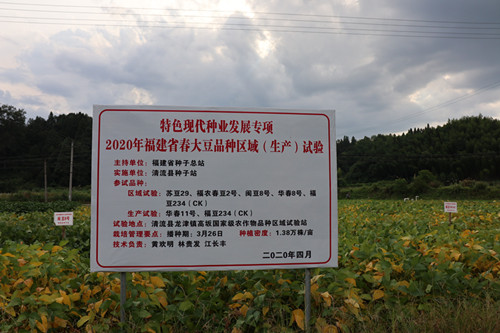大豆是优质的植物蛋白来源,也是健康的食用植物油资源,在疫情冲击农业生产对国家粮食安全构成严重威胁形势下,大豆生产的战略地位十分重要。2020年清流县种子站承担福建省春大豆品种区域试验和生产试验,区域试验5个品种,生产试验2个品种。