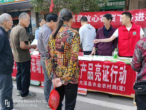5月15日,尤溪县农业农村局利用圩日到洋中镇后楼村进行农产品质量安全宣传。洋中镇后楼村是个人口大村,15日是后楼村每月固定圩日,吸引了各地小商小贩来摆摊设点,人员流动量大,是开展农产品质量安全宣传活动的好机会。在赶圩现场,工作人员向来往人员发放《中华人民共和国农产品质量安全法》《福建省食品安全信息追溯管理办法》《福建省豇豆标准化生产技术规程》《国家禁限用农药名录》等宣传材料500余份,并接受群众咨询100余次,认真介绍农产品质量安全相关法律法规、农产品生产安全用药、豇豆安全种植等相关知识,旨在进一步提高农户及消费者农产品质量安全意识,营造人人参与的良好氛围。